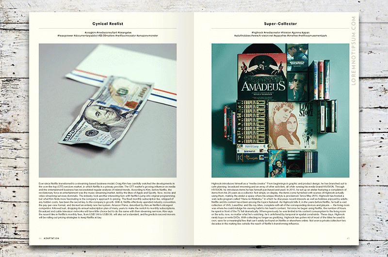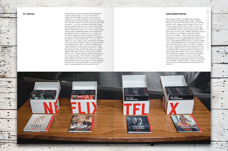 Magazine B Issue 49 (Netflix) is available now at LOREM (not Ipsum). Started in 1997 in Silicon Valley, Netflix was dubbed the icon of American popular culture following the success of its DVD-by-mail operation. 10 years after the DVD-era, during which the Netflix-logo-emblazoned red envelopes reigned supreme, Netflix introduced its movie and TV show streaming service and burgeoned into an online entertainment powerhouse. By releasing entire seasons of original programming such as ‹House of Cards› and ‹Orange is the New Black› all at once, Netflix was able to bring ‘binge-watching’ to the forefront of our culture and is now viewed by many as the future of entertainment. Discover Magazine B Issue 49 (Netflix).