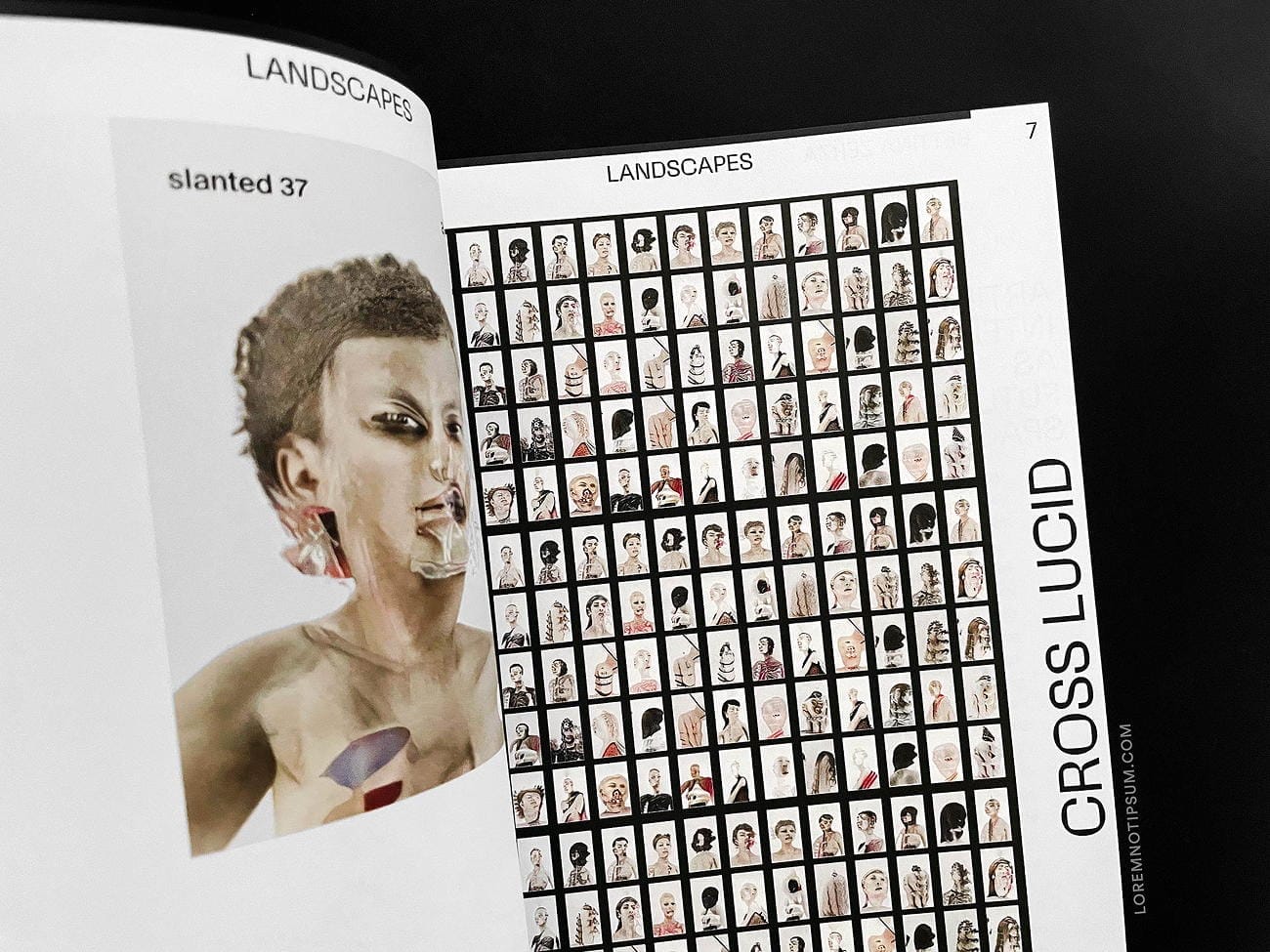 At Slanted, we are “hands on.” We love the human spark, provoke happy accidents (scratches and glitches), explore edges, and consistently enter unknown terrain. So yes, although this is a printed issue, it could very well have been transported to a neural chip. And we definitely figured out some ways to bring the issue to another dimension: A unique motif by CROSSLUCID has been printed for each cover of the entire edition—the aesthetics between portrait, still life, and expressionist topography, alien to our comprehension of what is human, natural, artificial, and digital.