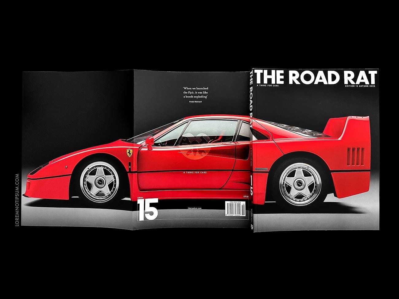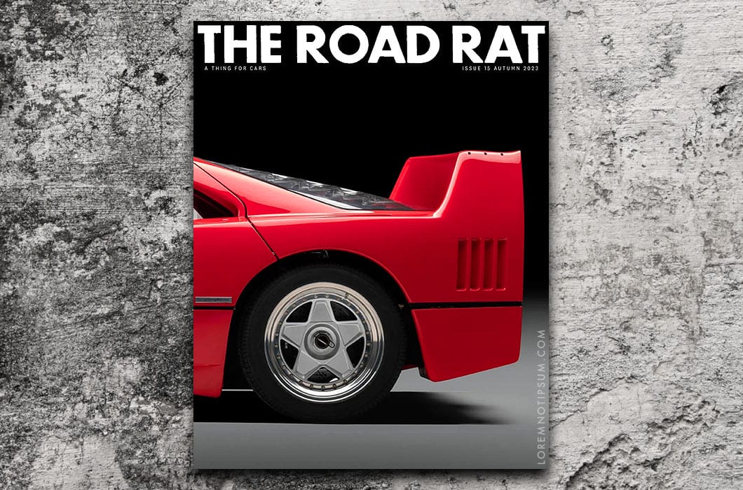 The Road Rat Issue 15 is here. The Ferrari F40 is coming to The Road Rat. Angus MacKenzie, former Editor-in-Chief at Motor Trend has researched and written a brilliant, 22-page portrait of the insanely quick, bloody-minded final car of Enzo Ferrari.